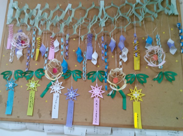 七夕の飾りと短冊もできて飾りつけが楽しみですね (^0^)