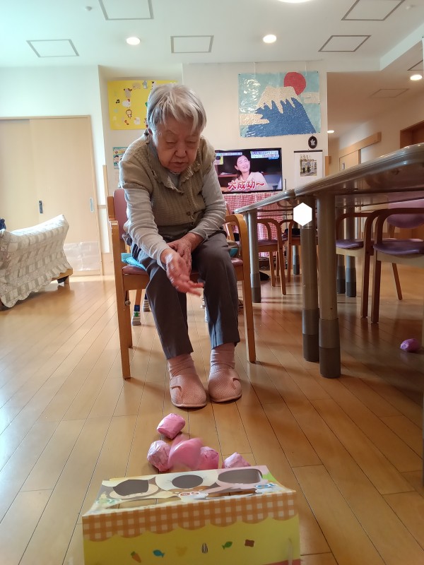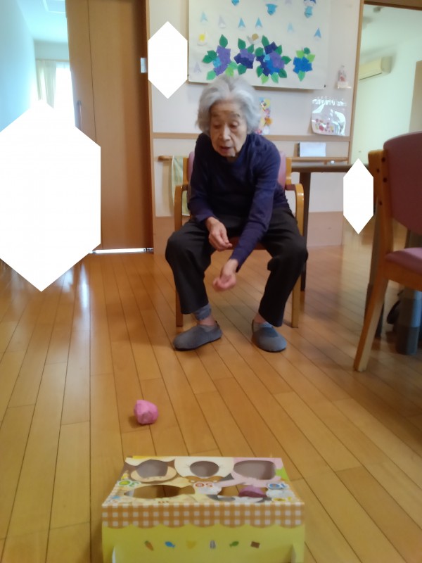 球を持ち、穴を狙って張り切って投げ始めます。 点数がありますので、高得点を狙ってハラハラドキドキ。
