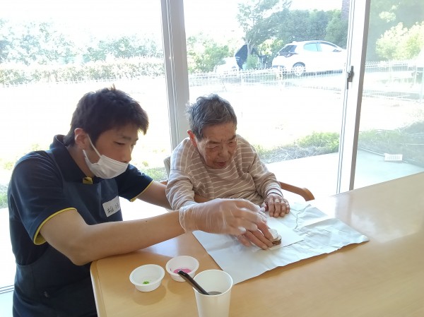 スタッフの方で用意させて頂きました手作りスタンプを使用して、