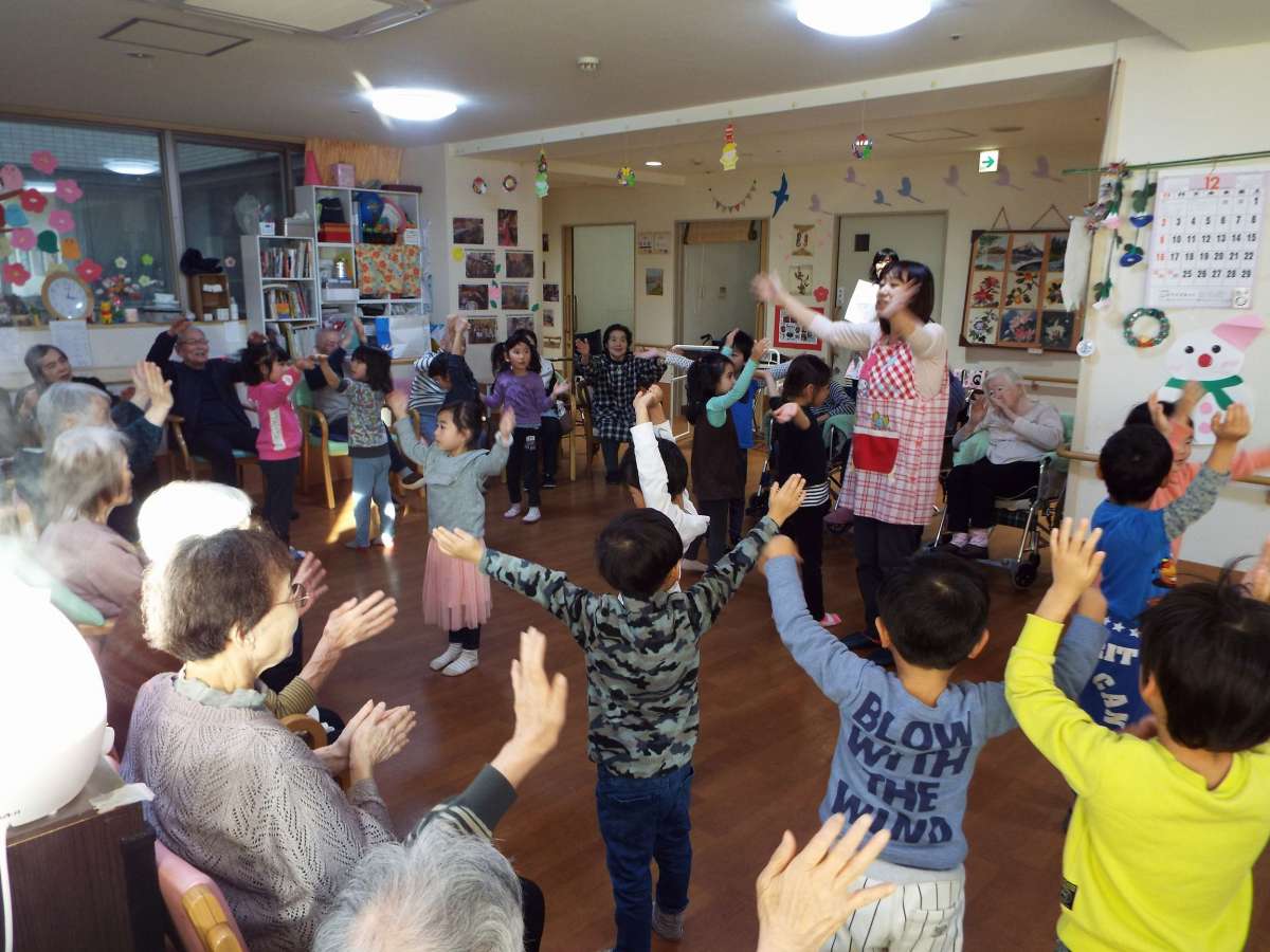 上手なご挨拶のあと、お歌やお遊戯を披露してくれた園児たち。
