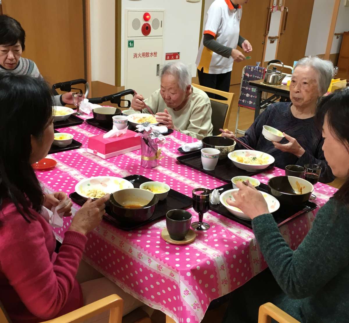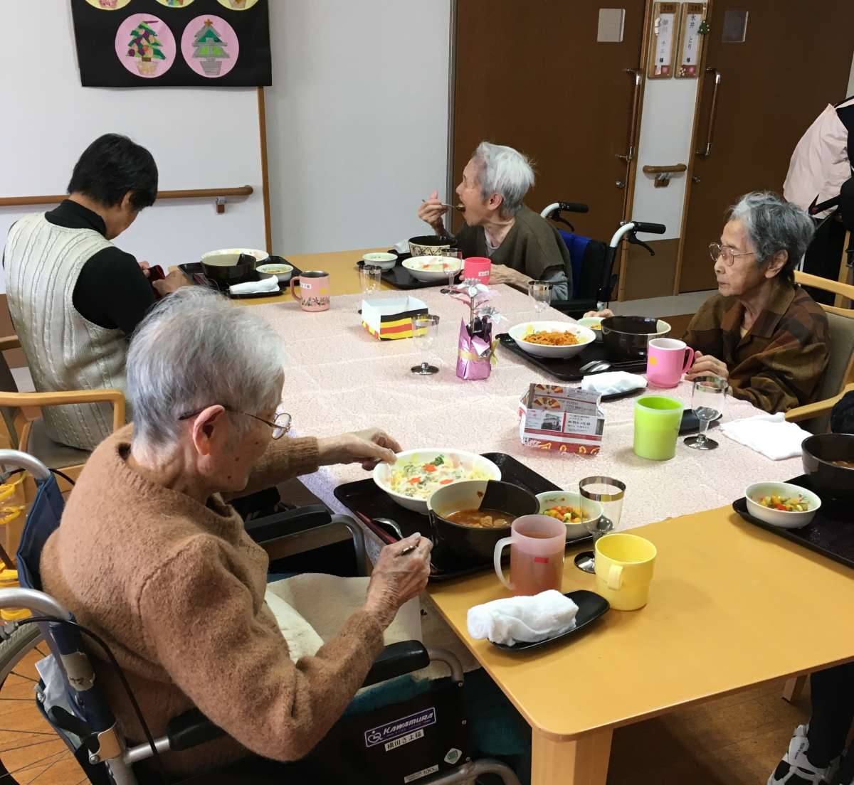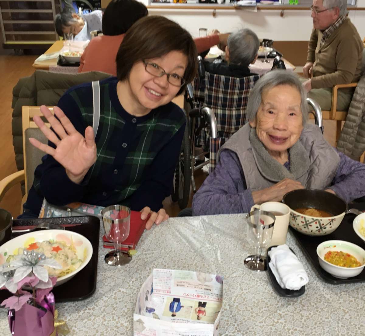 クリスマス会で汗を流した後、今度はご家族様も一緒にランチタイム!