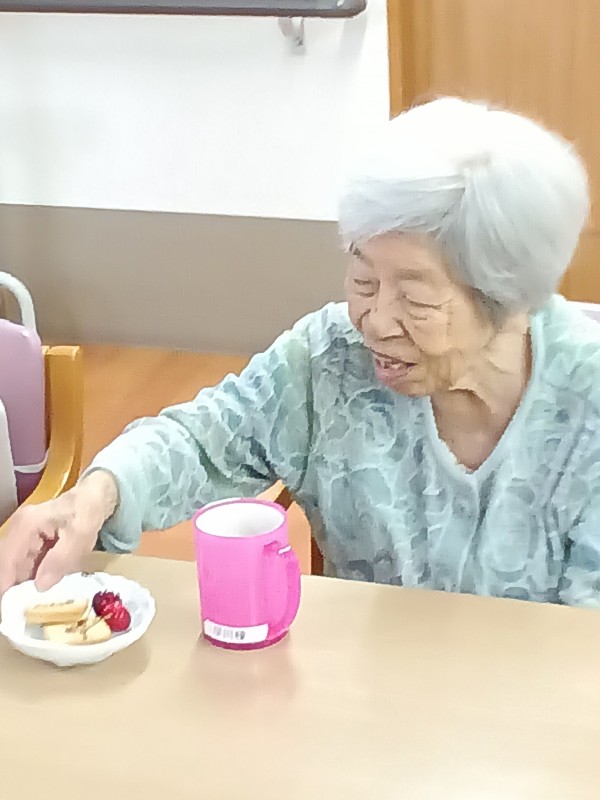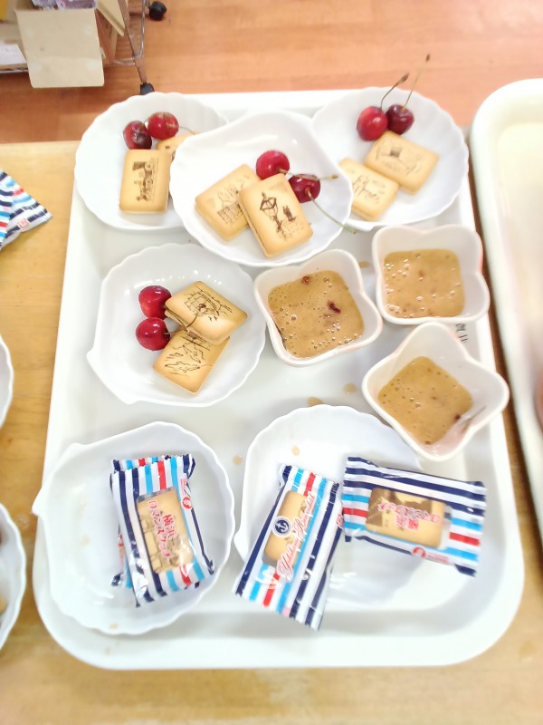 スタッフからサクランボを頂いたので、おやつのお時間でご利用者の皆さんにご提供しました(^^♪