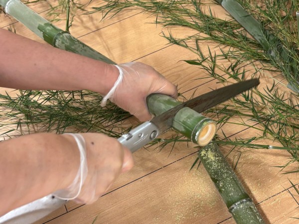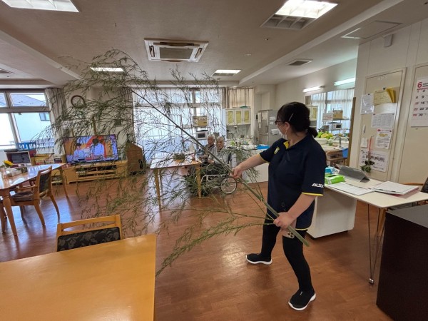 朝、職員が出勤すると玄関に2本の巨大な笹が!