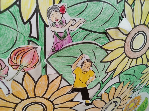 (ひまわりの花の間に、人も!?)
