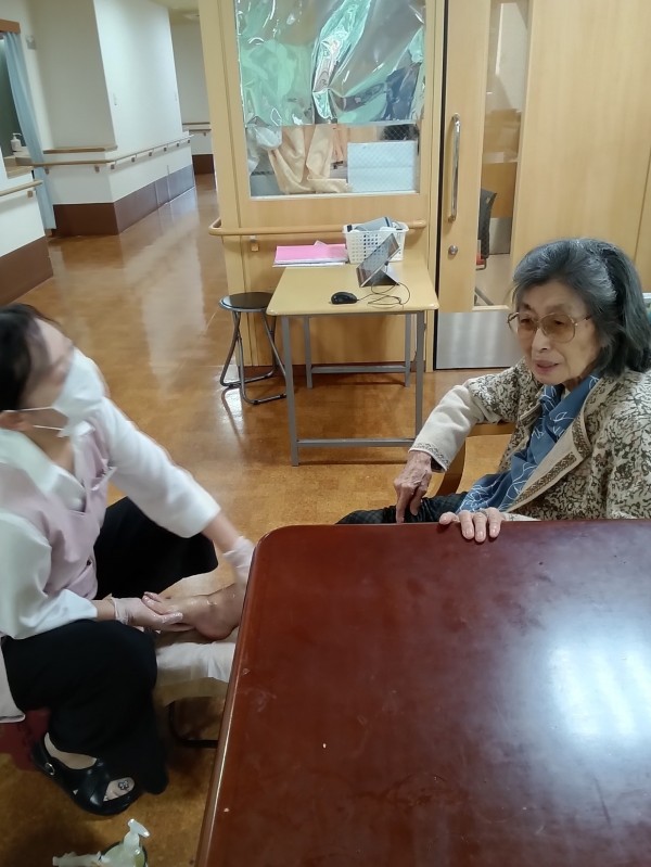 終わった後は、「気持ちよかった!」と、とても満足されていました(^^♪。職員も、ご利用者様も1回は無料体験を受けられるので、是非一度受けてみてください(*'▽')。気持ちが良く、癒されます。