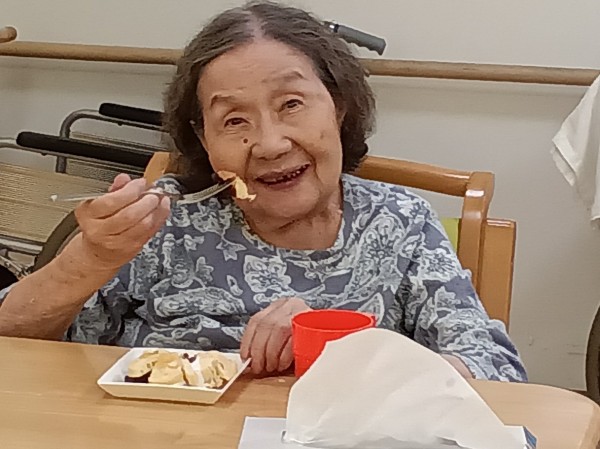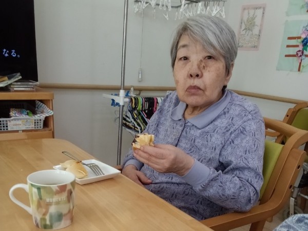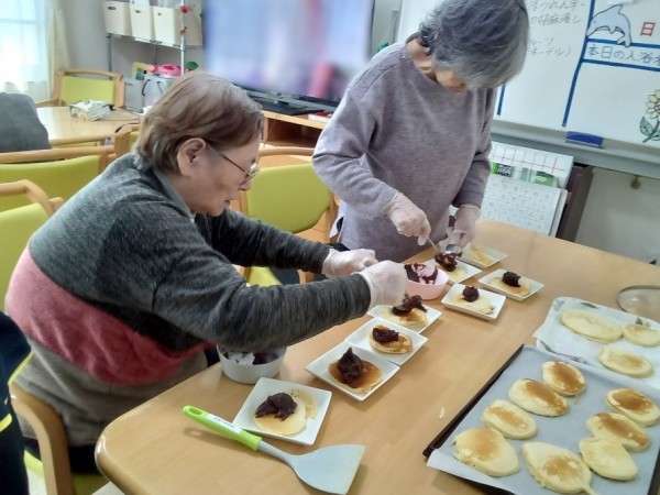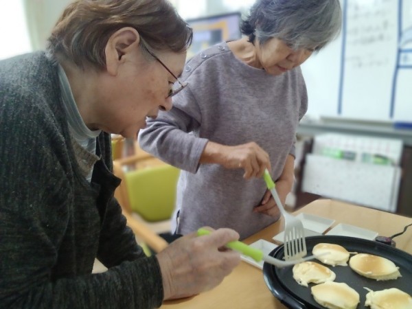 ご入居者様おふたりが、交互に混ぜて生地を作ってくださいました。