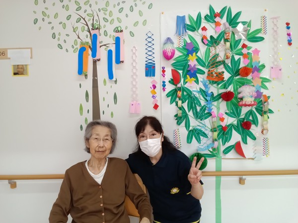 七夕飾りも綺麗に作成できました(*^_^*) きっと願い事が届くと思います。 これからも元気に健康に過ごしてくださいませ。