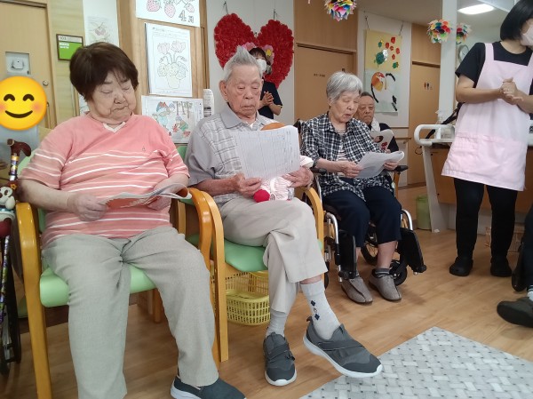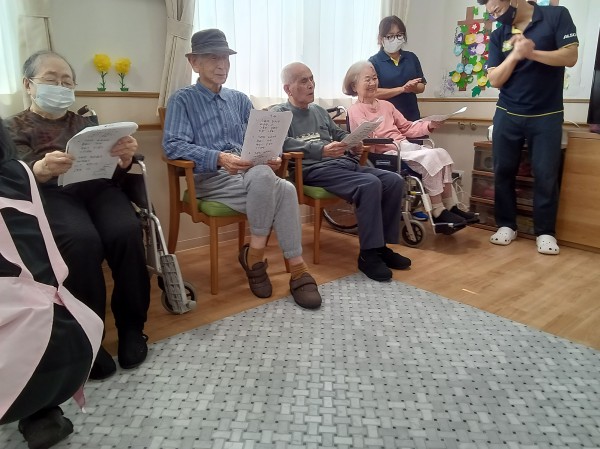 歌詞カードを手に持ち七夕や季節の