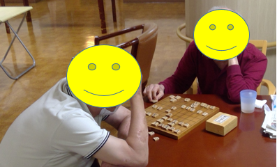 本日は夕食後に将棋を指している利用者の様子をお届けします。
