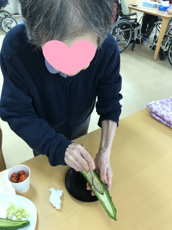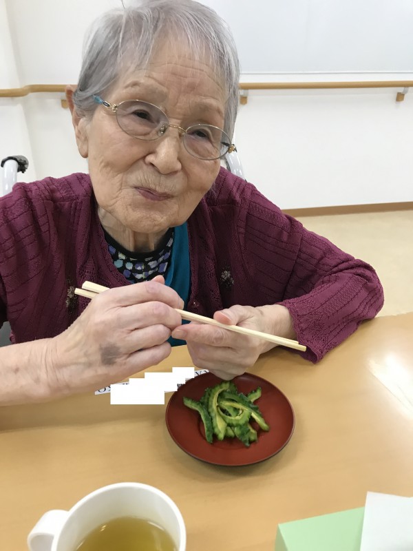 立派にできたゴーヤをみんなで一緒に調理します。