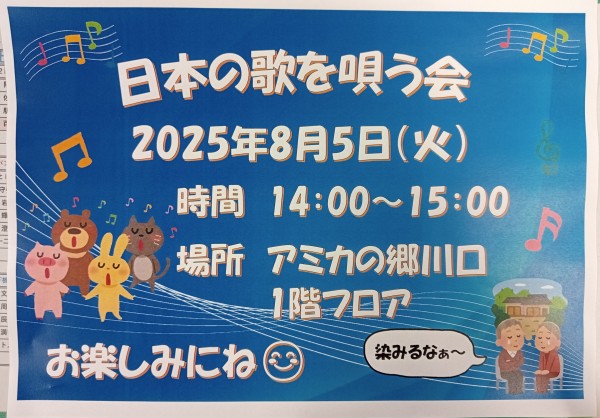 日本の歌を唄う会のみなさまが来てくれます(^^♪
