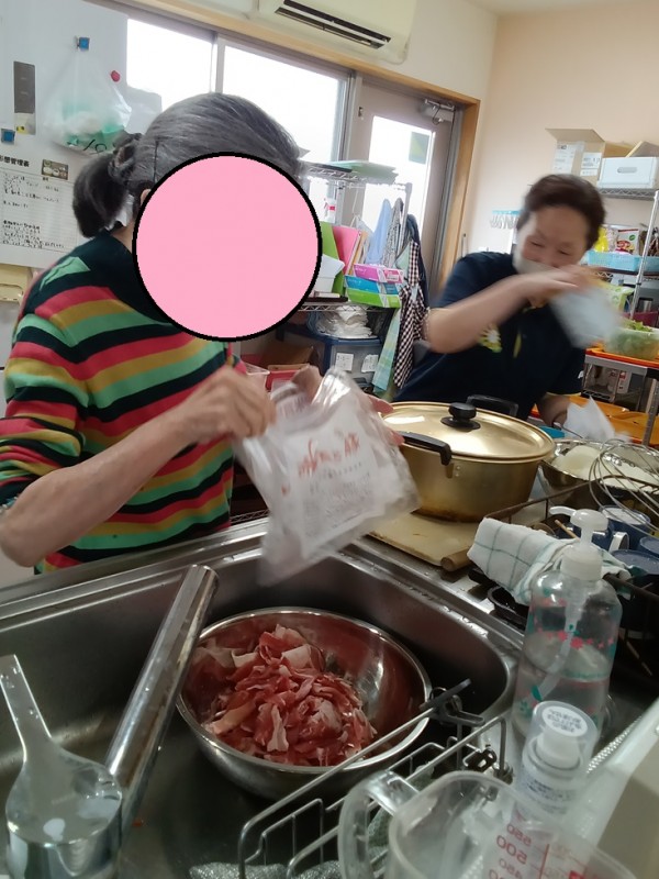 6月は『避難訓練とカレー作り!』と題しましてカレー作りのレクリエーションの最中に火災が起きた想定で避難訓練を行いました。
