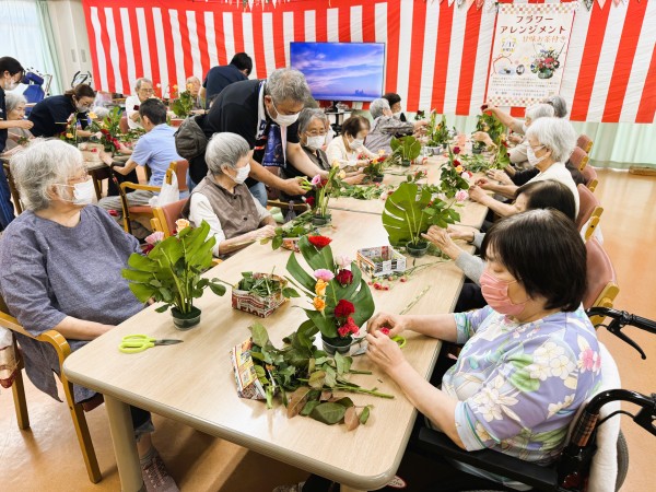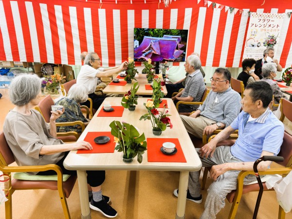 本日は17日(木曜)に行われました「フラワーアレンジメント」&「お茶会」の様子をお届けしたいと思います!