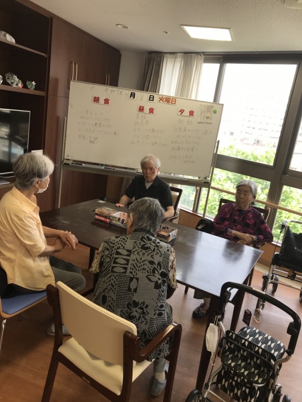 日によっては傾聴ボランティアの人たちが来てくださりご利用者様の、悩み事や趣味の事をおしゃべりし過ごされております。