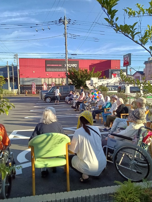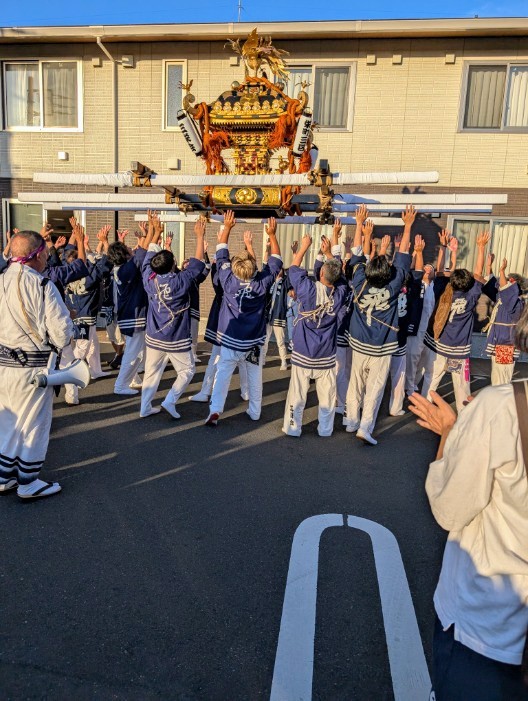 八坂祭りでは悪疫退散、五穀豊穣を願ってお神輿を上空へ投げ上げる「暴れ神輿」が有名です!昨年に続き、地域の皆様のご厚意でホームの駐車場で暴れ神輿を見ることが出来ました!