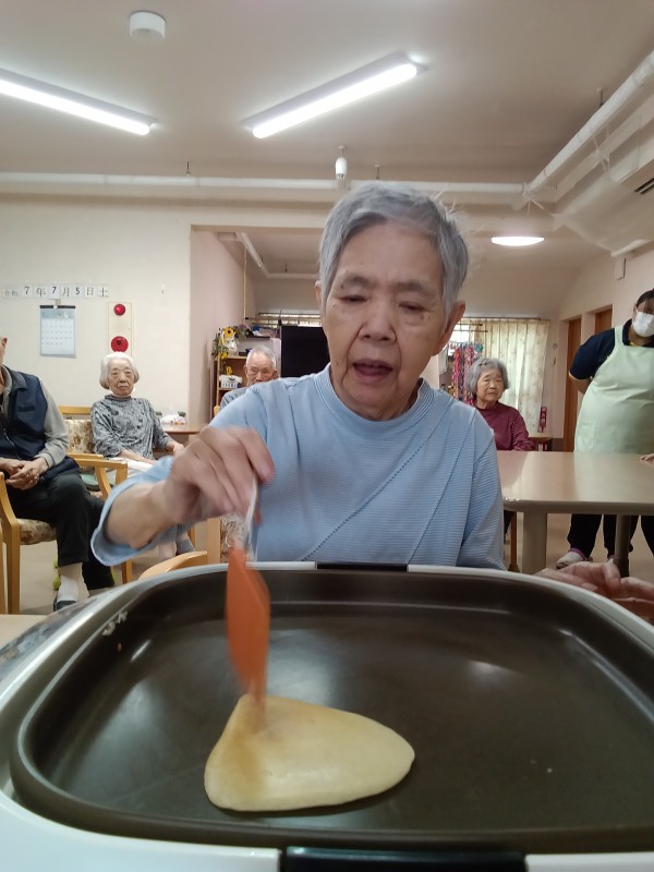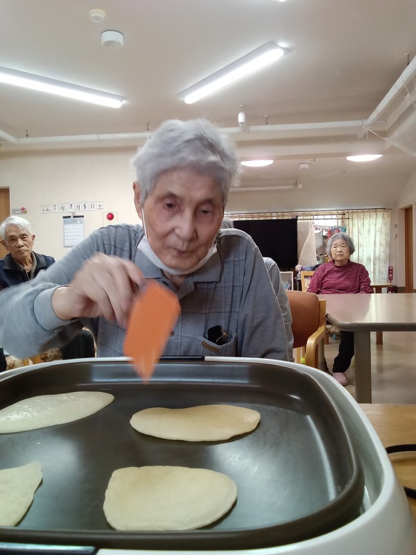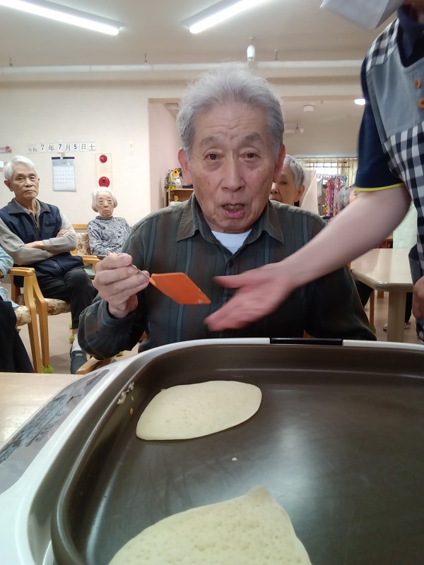 おやつにクレープを作り、焼く作業を手作て頂きました。