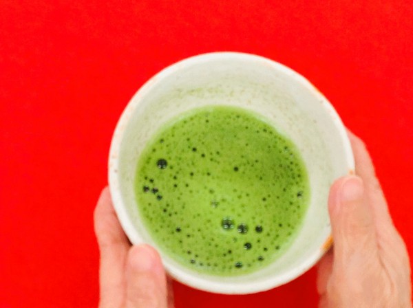 続きまして2品目「虎谷の抹茶:京の調」になります。スタッフ特製の抹茶を味わって飲まれています♪