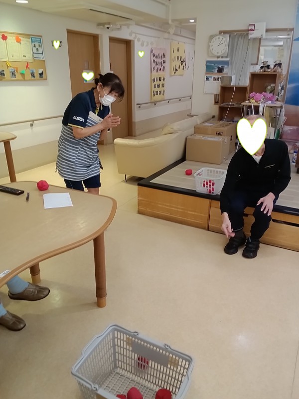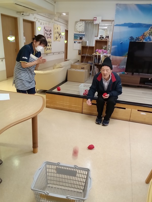 ご利用者様、職員もかつてない集中力で籠に目掛けて