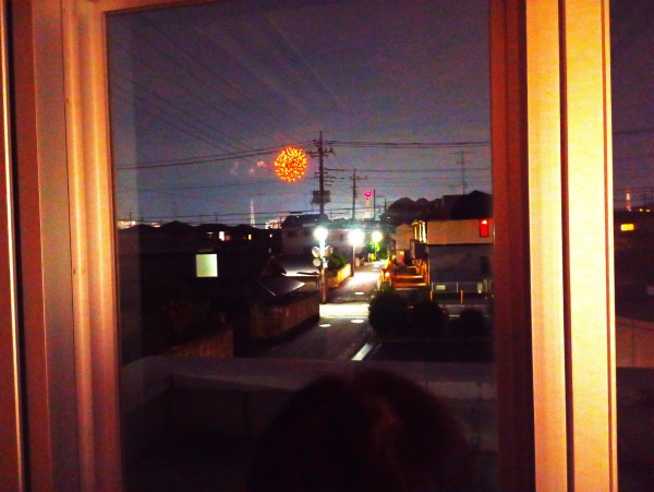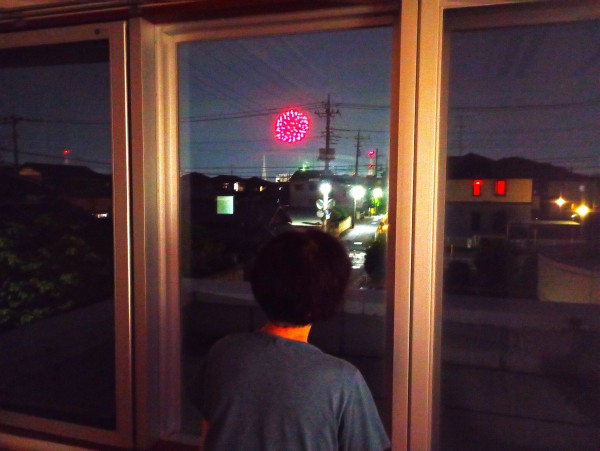 大きな花火の音に反応して、窓から外をのぞく
