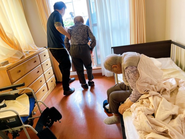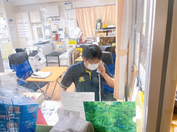 冷静に誘導をするK職員。テキパキと誘導の準備をしながら利用者さんにはパニックにならないように優しく声を掛けます。