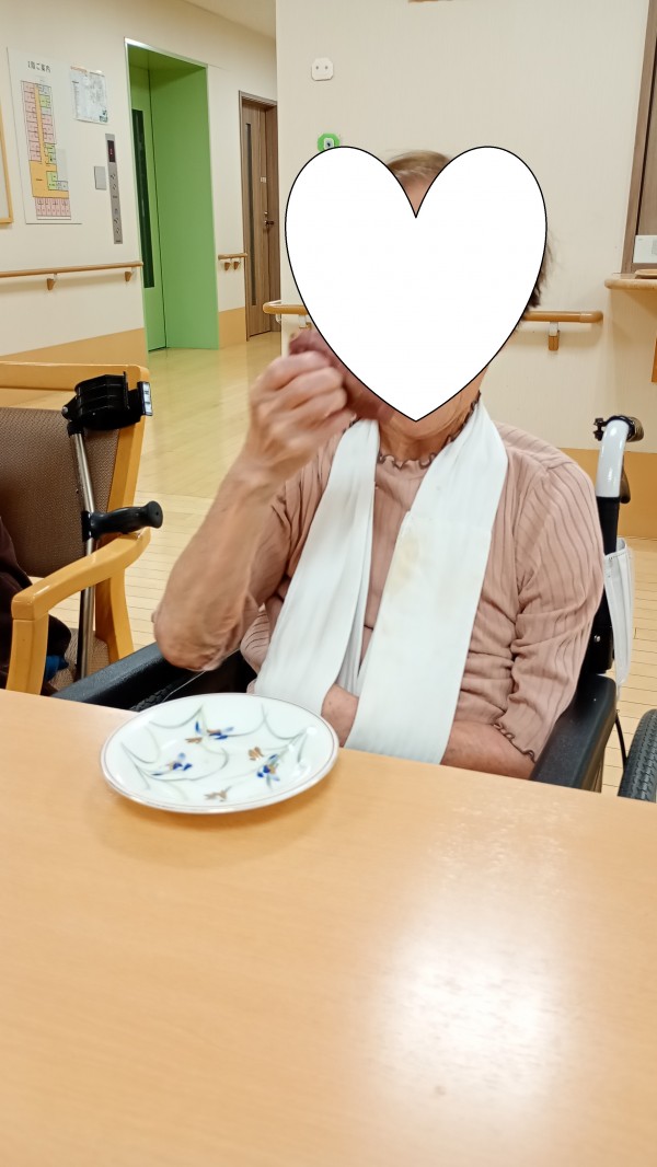 一か月ぶりの焼いもレク、ご利用者様は「とても甘くて、美味しいです(^^♪とのこと
