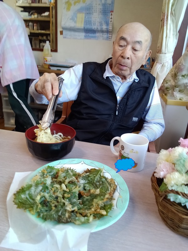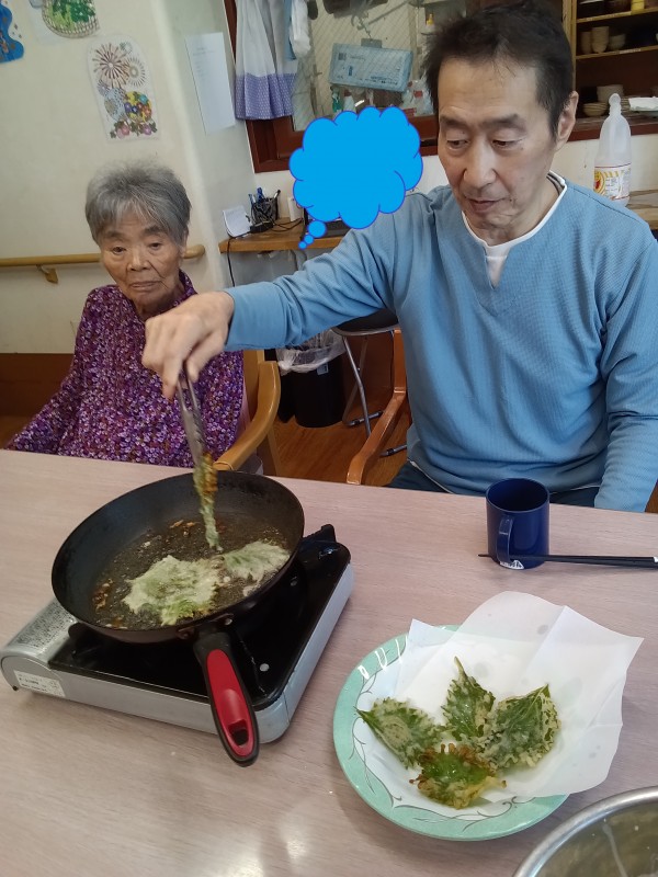 天ぷらの具材は、ホームの畑でたくさん採れた大葉です(*'▽')