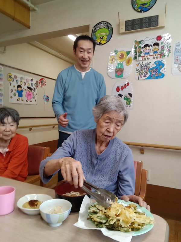 揚げた天ぷらを取っていただき、おいしく召しあがられました(^^♪