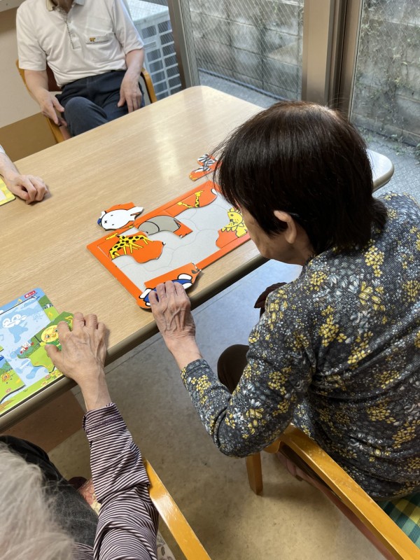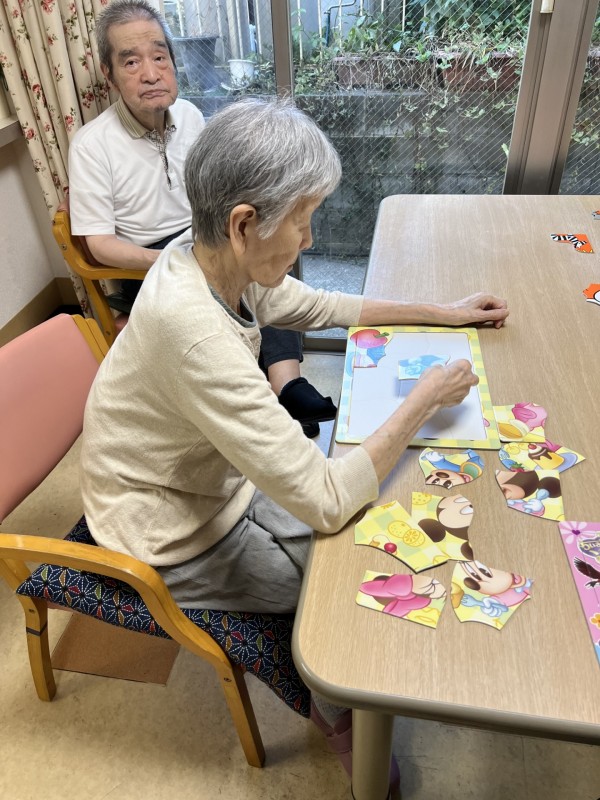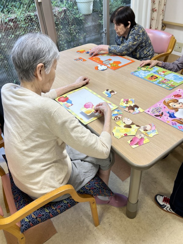 今回は1階の皆さんに脳トレーニングのレクにてジグソーパズルをしていただきました。