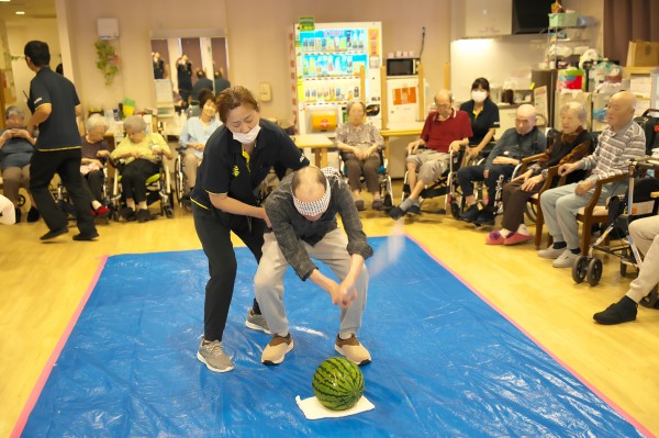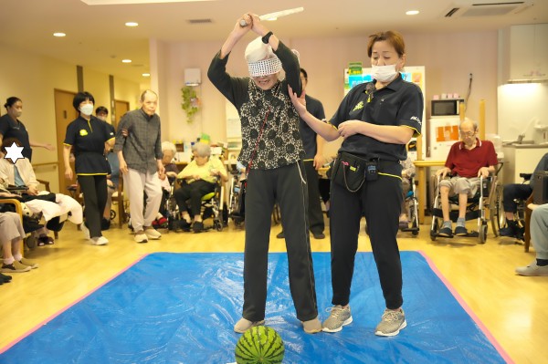 今回は毎年恒例のスイカ割りの様子をご覧いただきたいと思いますー!!