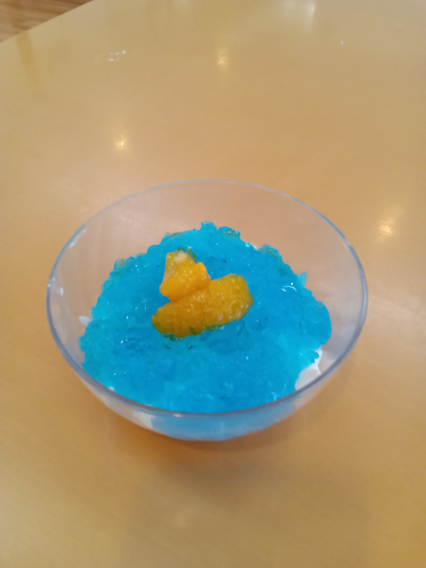杏仁豆腐の上にゼリーを乗せて最後にミカンで飾りを付けて完成です!!