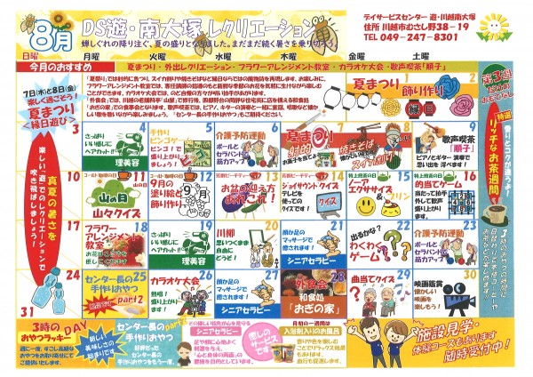 夏本番の8月。今月もみんな様に楽しんでいただけるレクリエーションをたくさんご用意いたしました!
