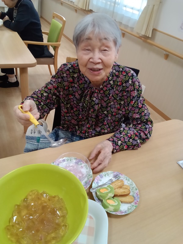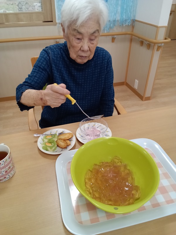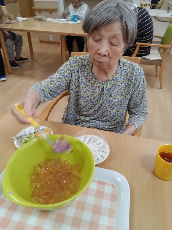 暑い日が続く中、おやつに冷た~いゼリーを召し上がって頂きました!
