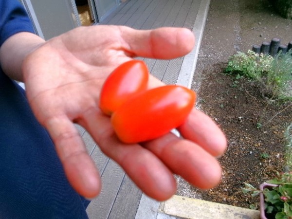 自慢の中庭で新たにミニトマト【アイコ】の苗を植えていたのですが、