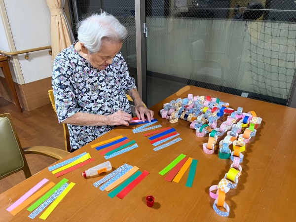 輪っかをつなげる前に、組み合わせを考えてリボンを並べていくのです