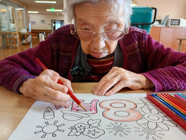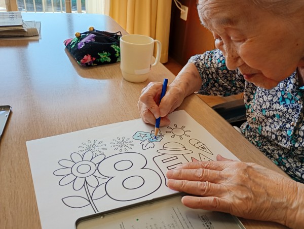 今回のブログでは3階ご利用者様が塗り絵をする様子をお見せします♪♪