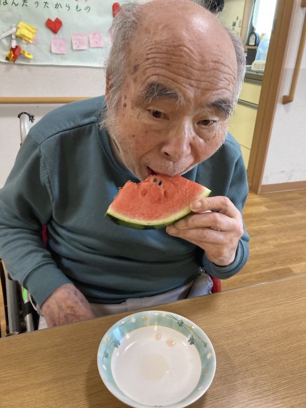 今年のスイカは、かなり甘かった様で「美味しい!美味しい!」と