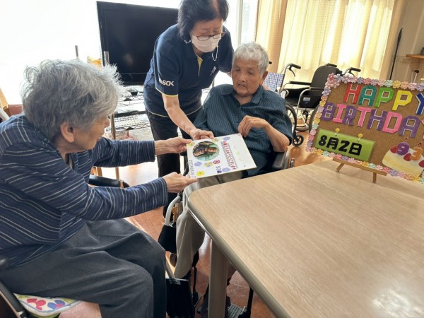 お祝いの色紙をプレゼントされ、みんなから「お誕生日おめでとう!」の言葉をたくさんいただきました。