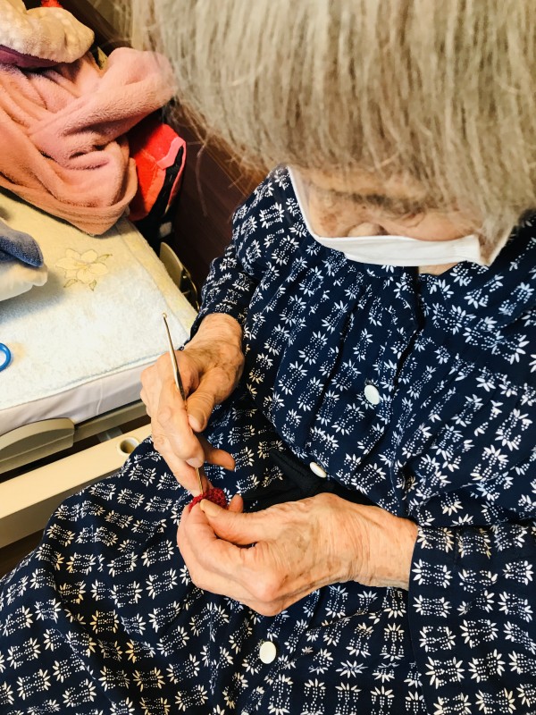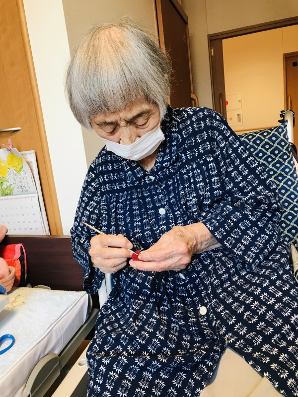 それに気づいたご利用者様が毛糸で可愛らしいカバーを編んでくださいました(๑˃̵ᴗ˂̵)♡♡♡