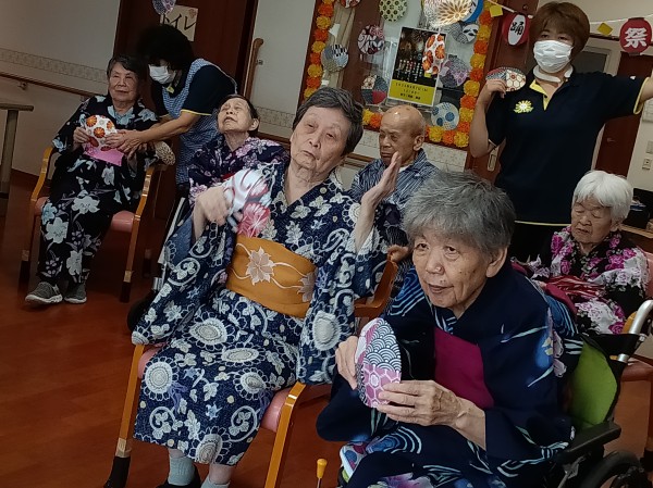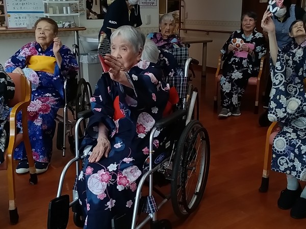 待ちに待った『いきいき盆踊り』の日がやってきました(*^-^*) 2階の利用者様は午前中から浴衣選びです(^O^)/