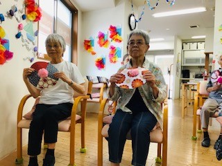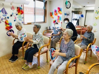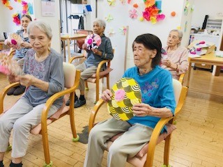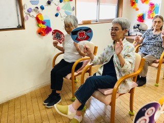 続いては、先日皆さんで作った、素敵なうちわを使って、、、、