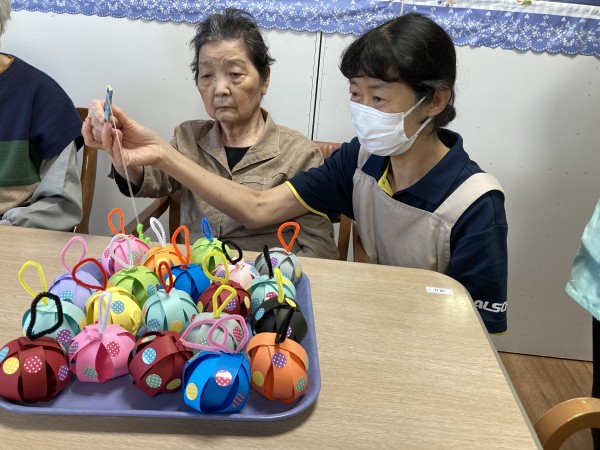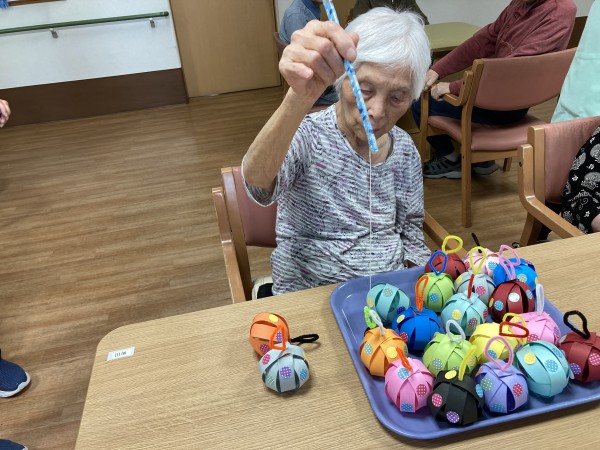 やなかのヨーヨーは職員お手製の紙ヨーヨー