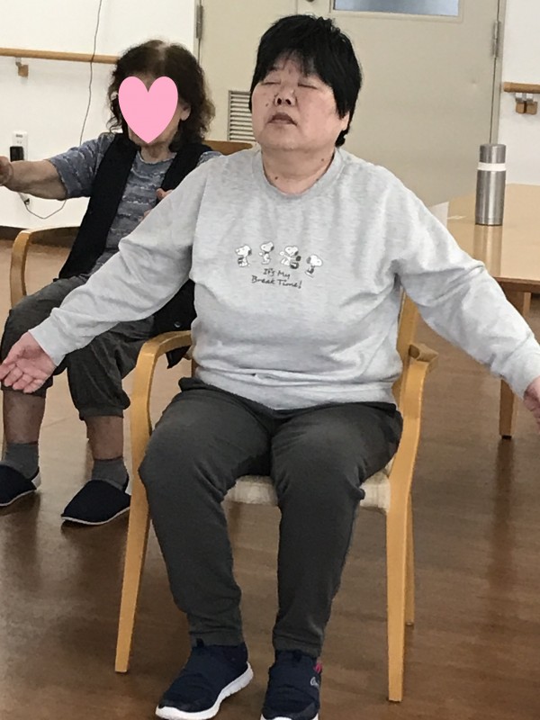 皆さんのびのびと体操をしております。