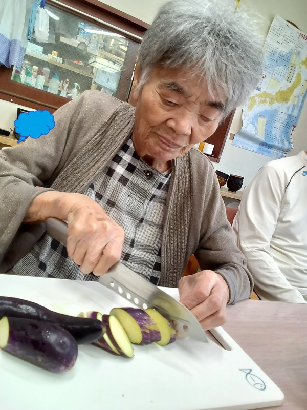 ホームの畑で育てていたなすがたくさん収穫できたので