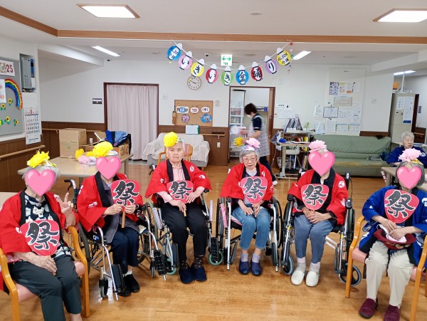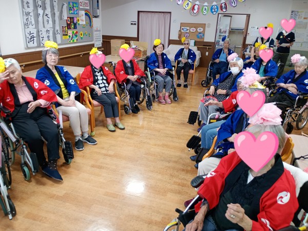 はっぴ姿のご利用者様がこの人数集まると圧巻の美しさですよね!!眩しいまである!(笑)
