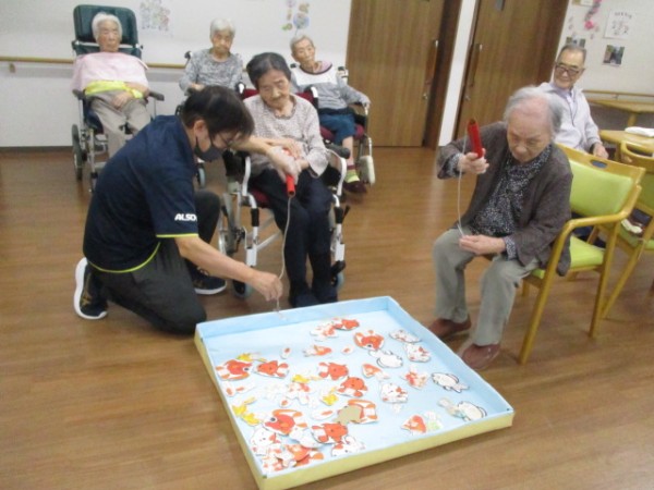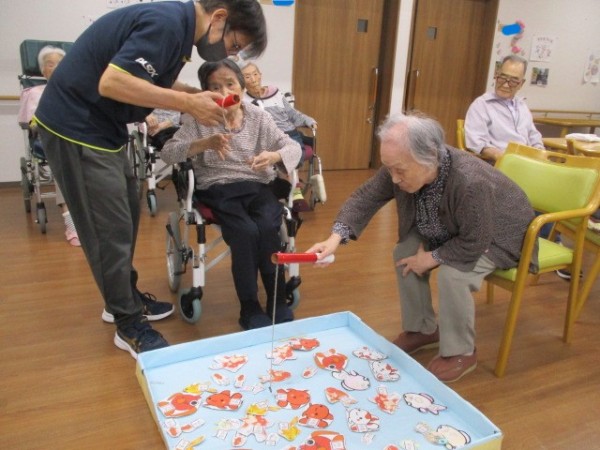魚釣り????釣りゲームを行いました( ^ω^)・・・ 磁石に引っかけて魚を釣るゲームです。 楽しく参加されておりました。