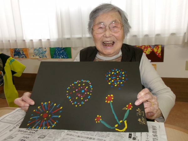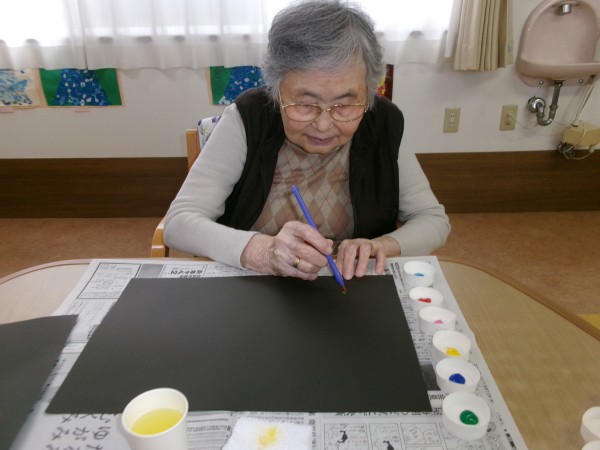 絵の具を使い、花火を描いて頂きました!(^^)!