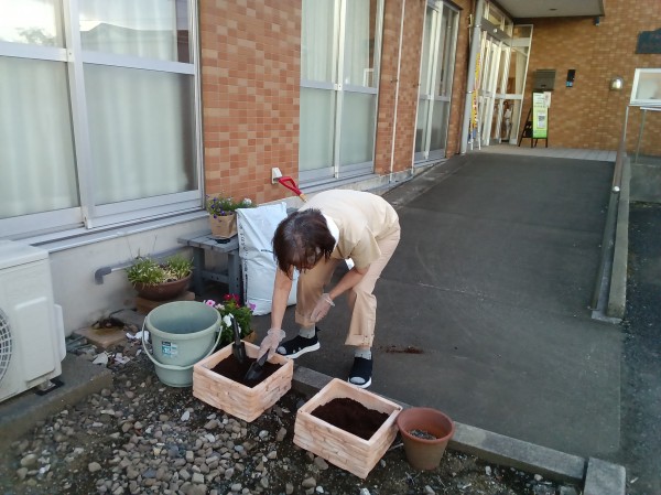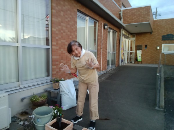 花の苗をみたM様は「任せてね!!素敵な花壇を作るわよ!!」