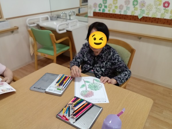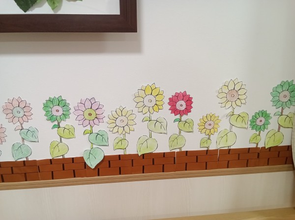 みなさんの日々の力作を、作品コーナーに展示しています。「これも、これも、私のだ」<( ̄︶ ̄)>、と通りがかりに眺めていらっしゃるお姿にスタッフも嬉しくなります。ホールを華やかに飾ってもくれていますね( ╹▽╹ )