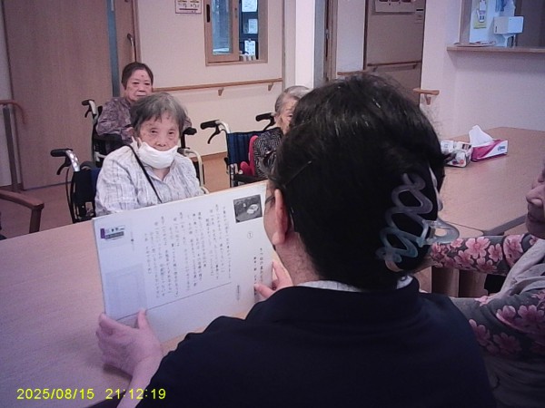 今回は利用者様に息子役をスタッフが母親役で読んでもらいました