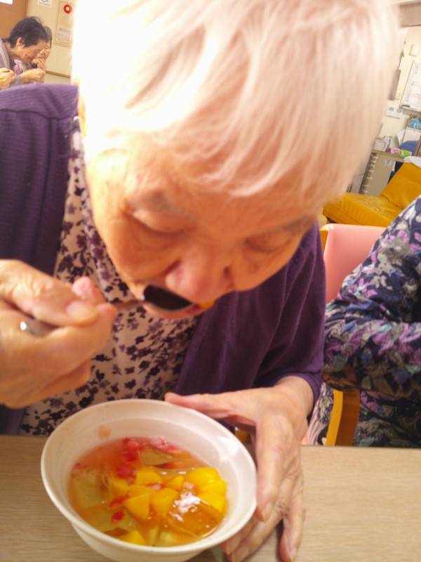 ご利用者様にお手伝いして頂き美味しいフルーツポンチが出来ました!(^^)!